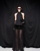 Long halter dress with feathers. Stretch. It features a tulle skirt. Flared line. Soft fit.