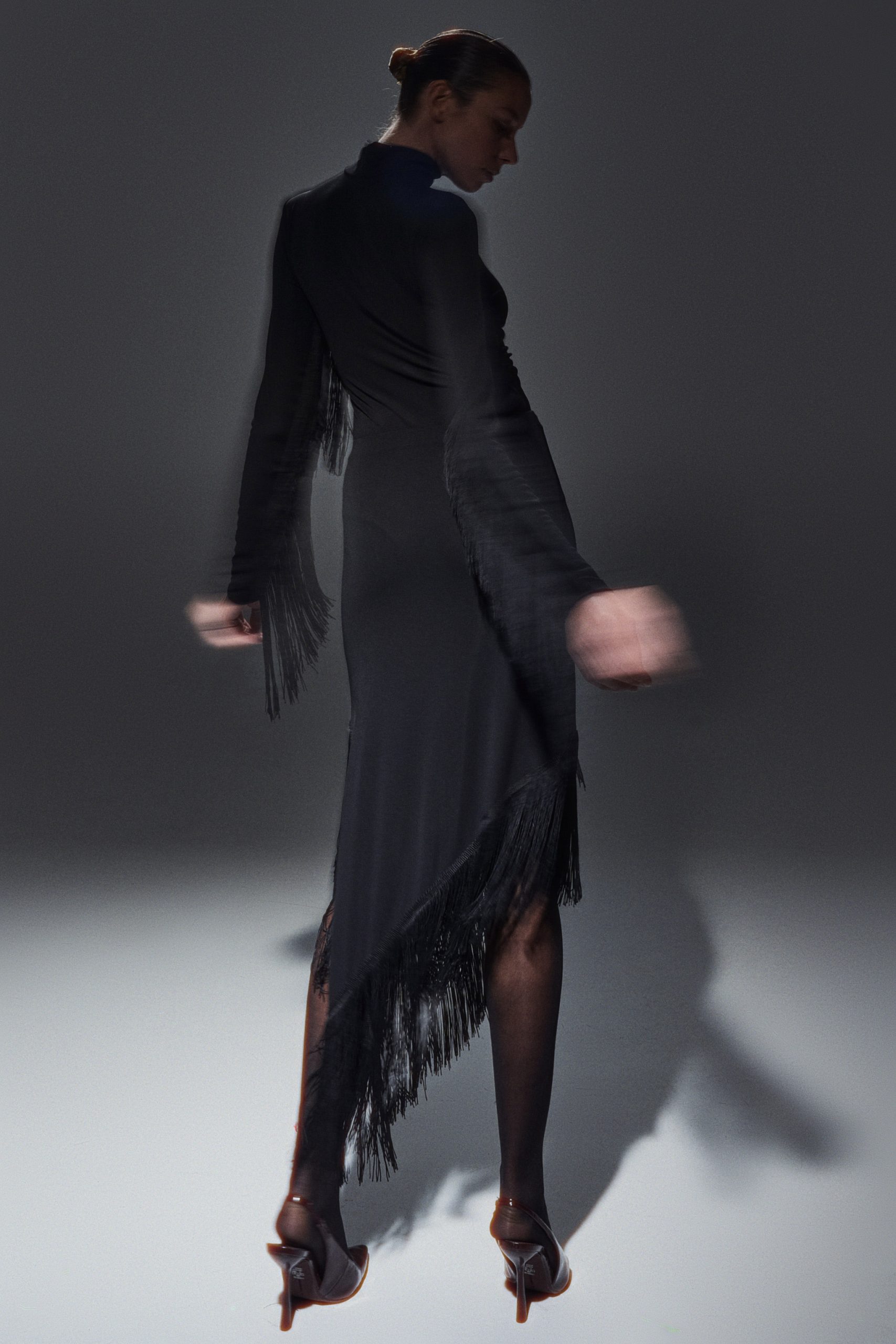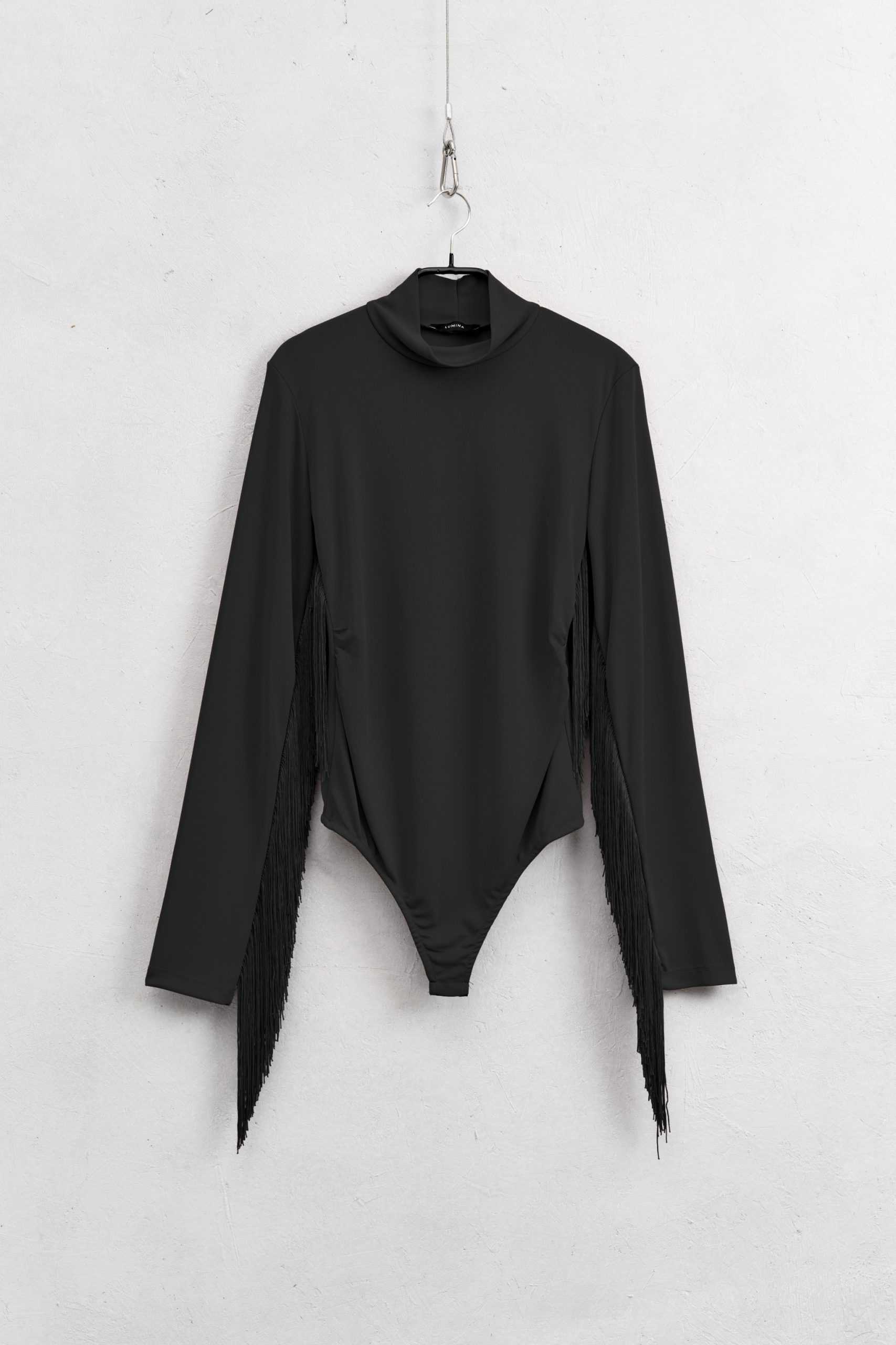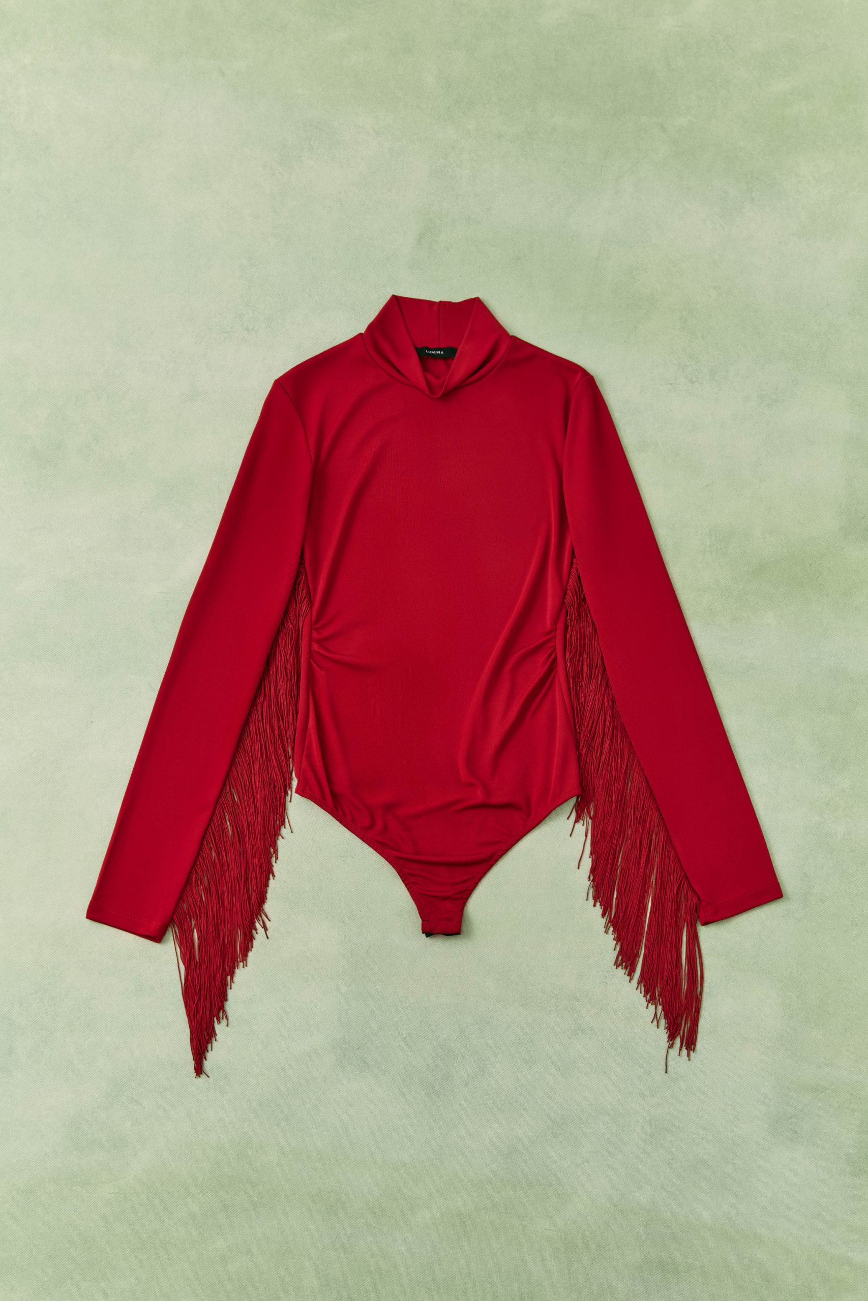 High neck bodysuit. Detail of fringe application. Bottom closure with buttons. Regular fit,