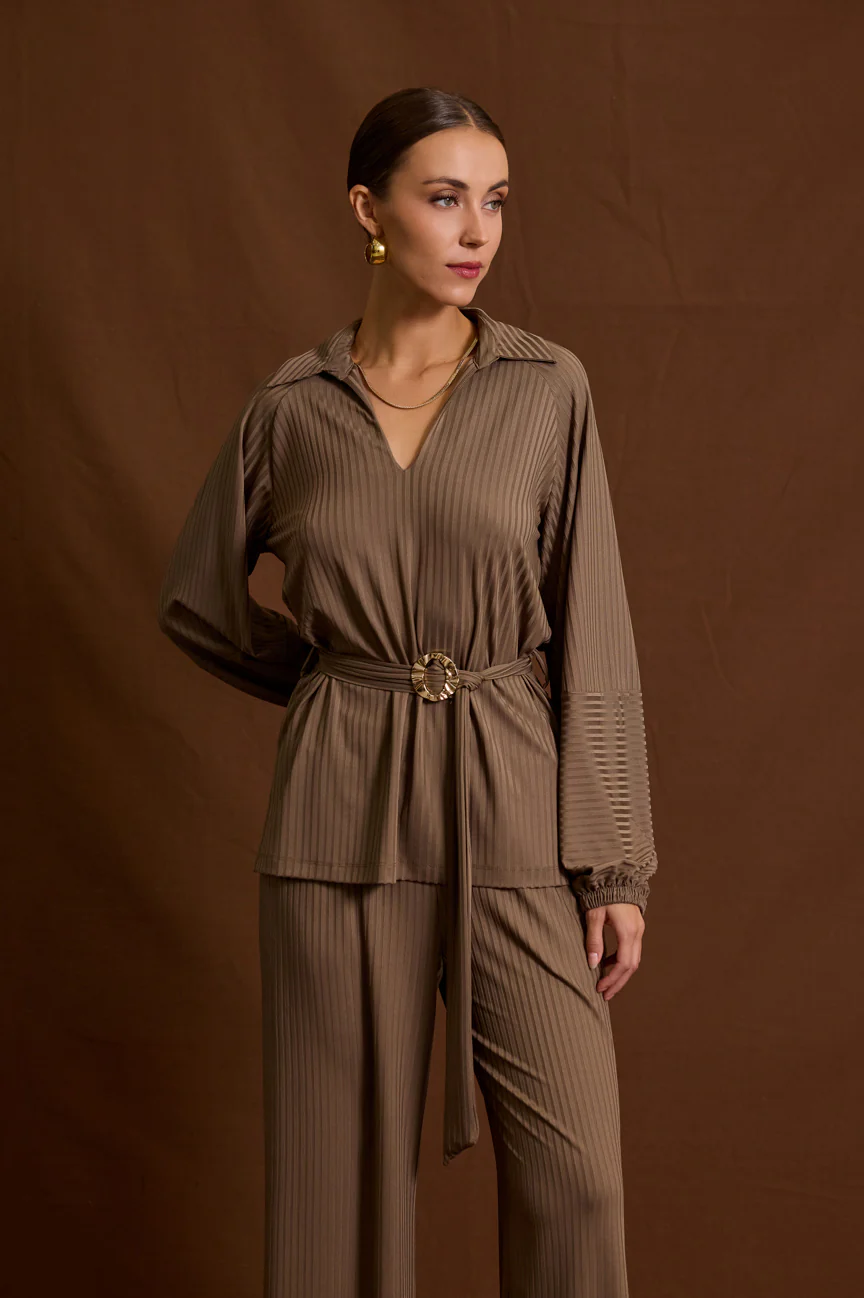 Μακριά μανίκια με λάστιχο στο τελείωμα.