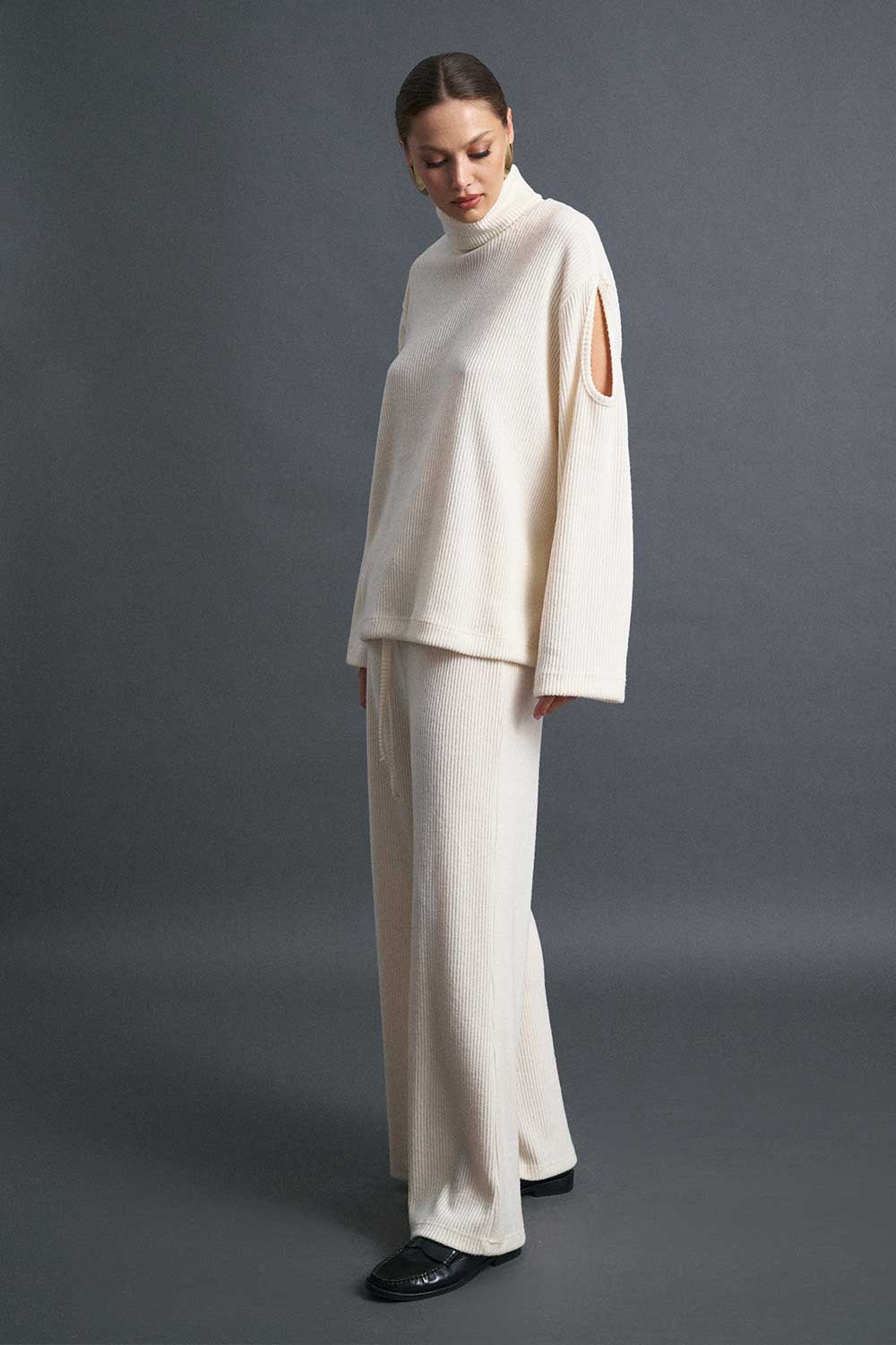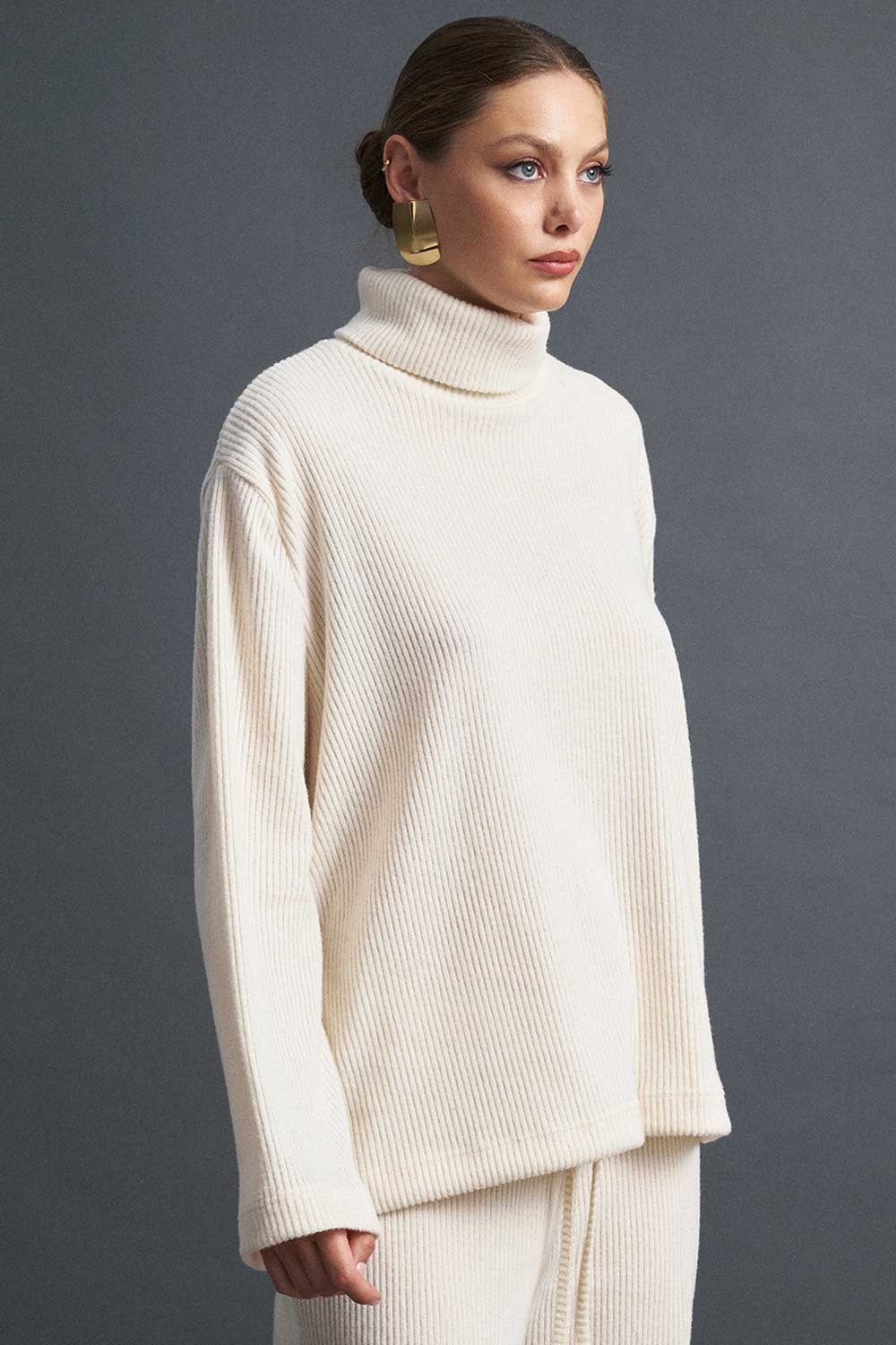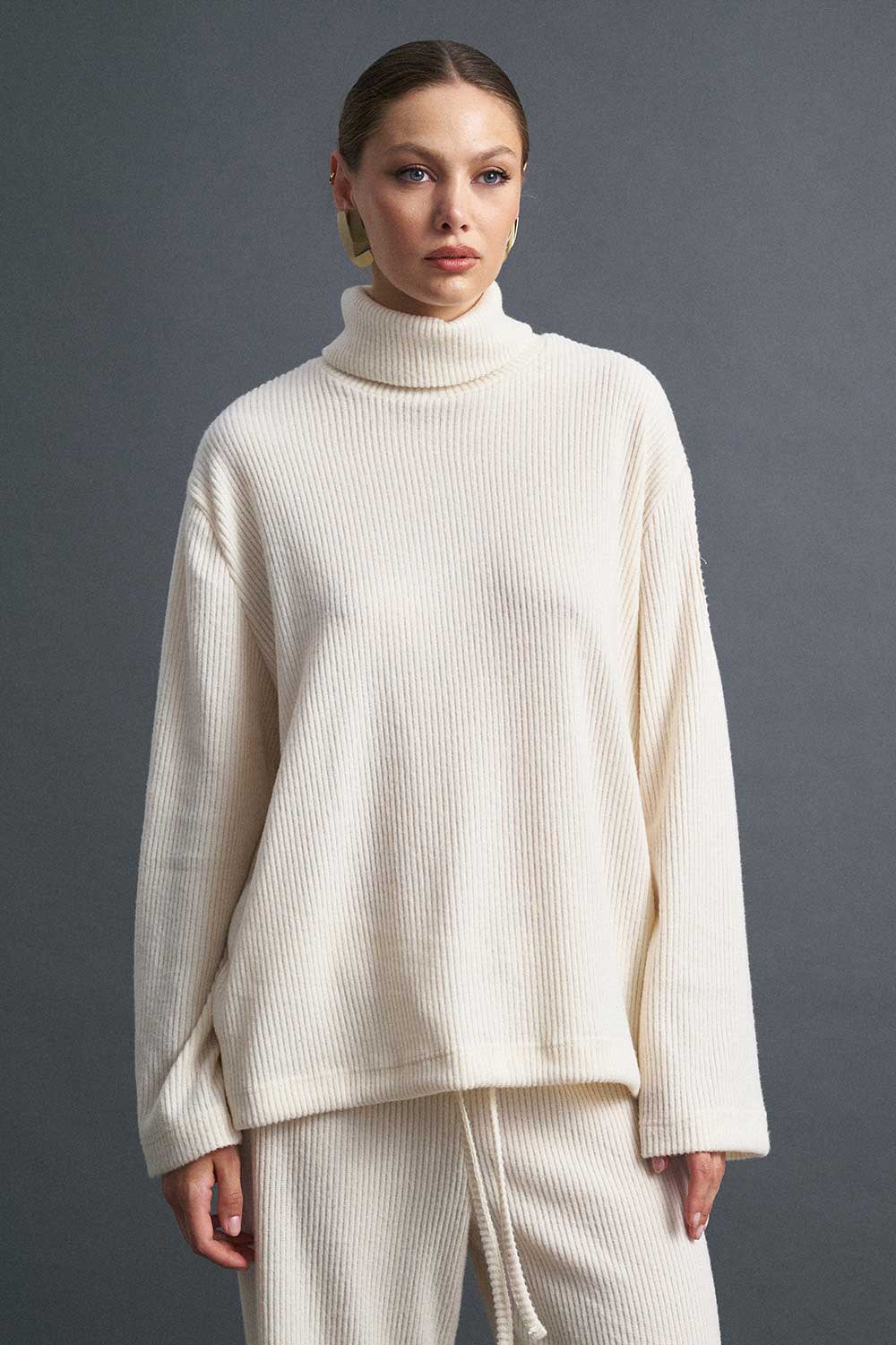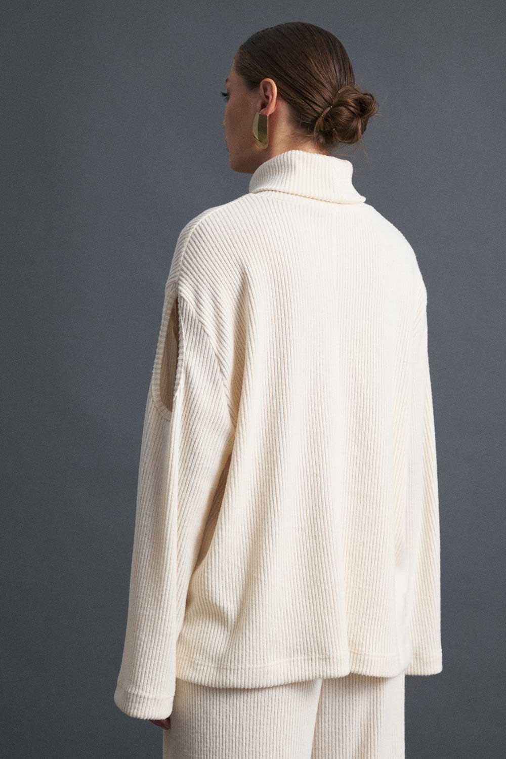 Μπλούζα πλεκτή με ζιβάγκο σε one size νούμερο και άνοιγμα στο χέρι.