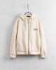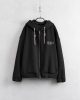 Cotton blend sweatshirt. Hood and drawstring. Plush interior. Front zip closure. Embroidered text detail. Oversized fit, available in ONE size.