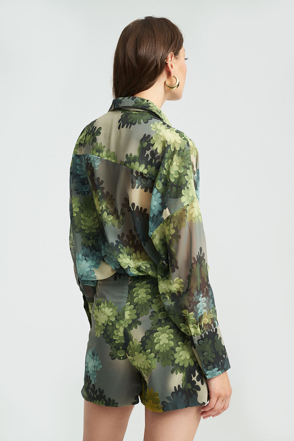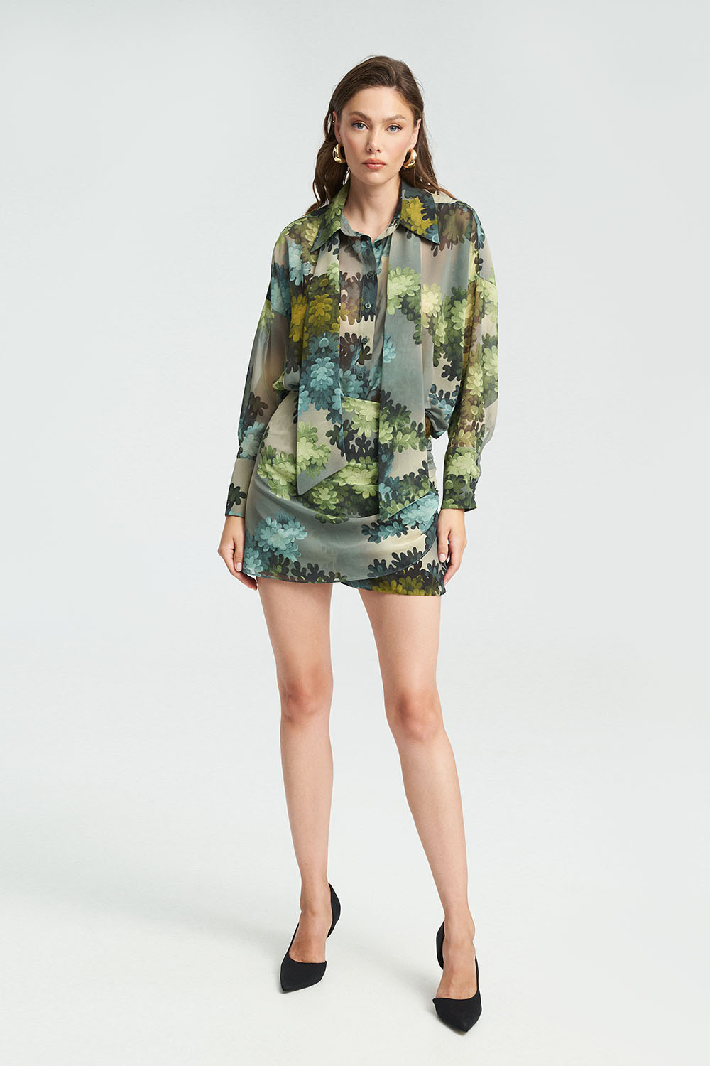 Skort εμπριμέ με print σε πράσινες αποχρώσεις και σούρα.