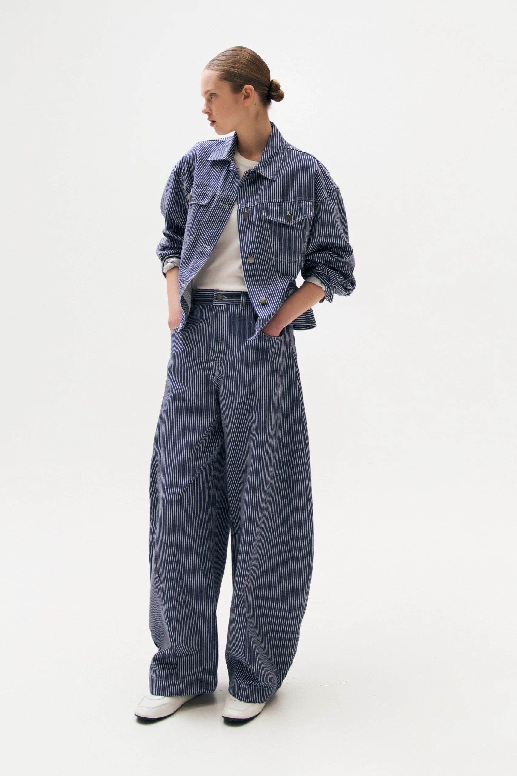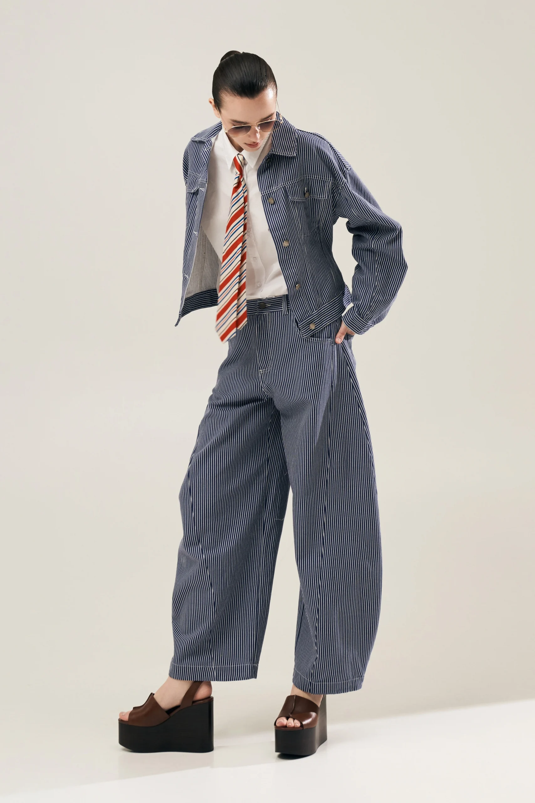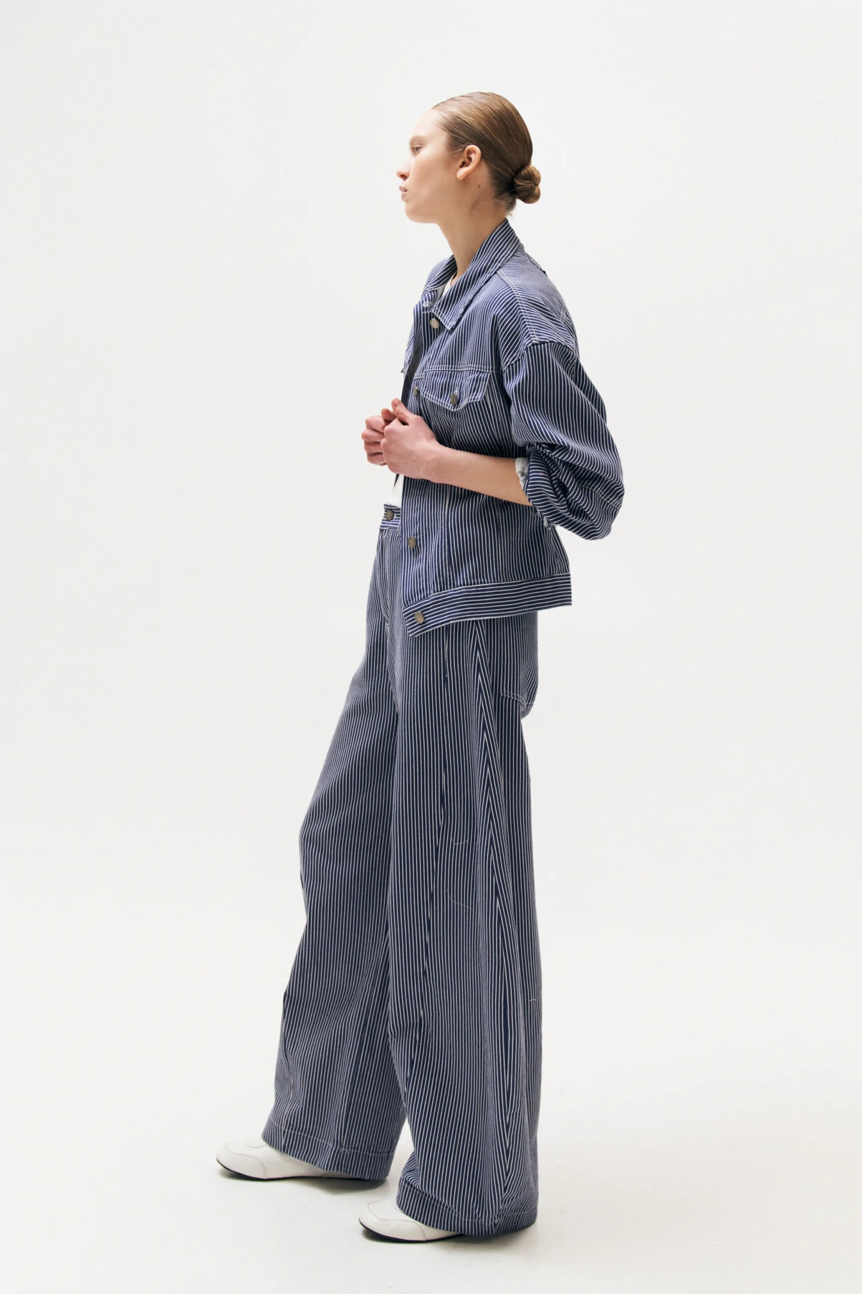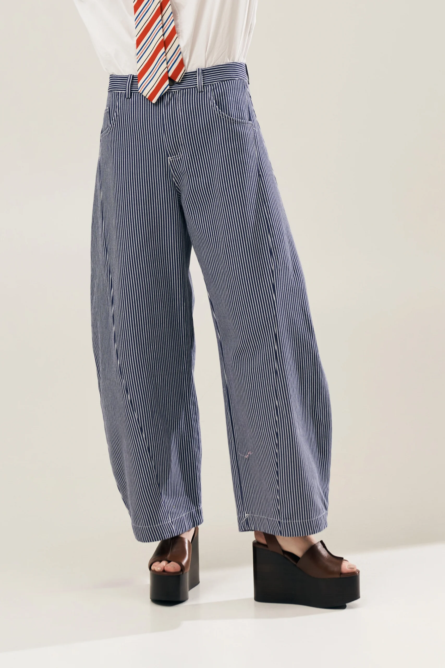 STRIPED DENIM TROUSERS