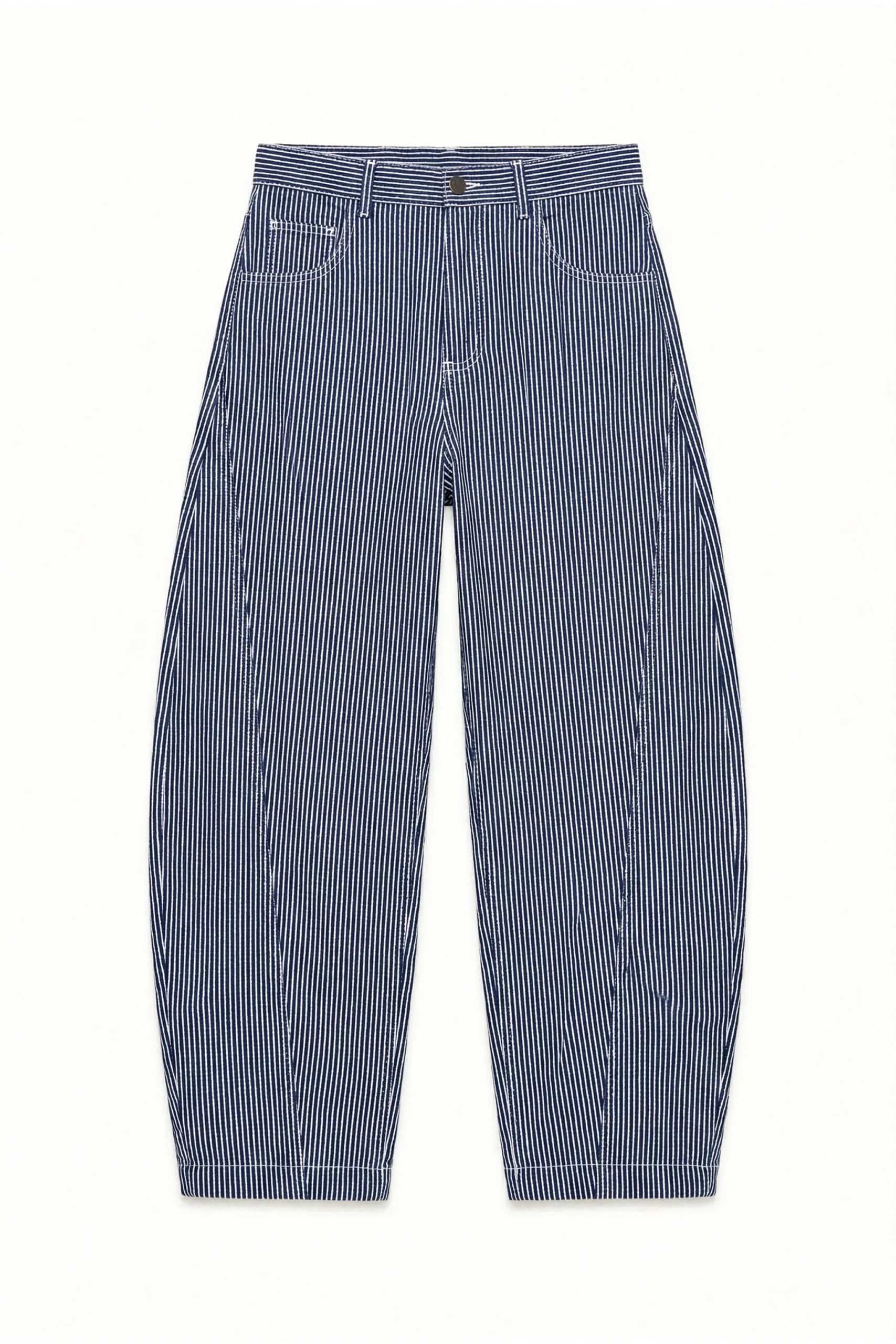 Long trousers made of 100% cotton striped fabric.